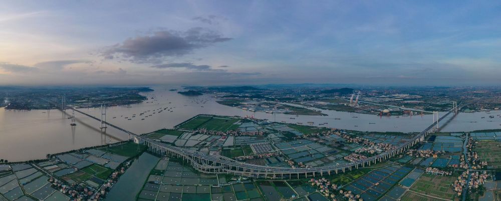 ↑南沙大桥全景(2022年6月29日摄,无人机照片)。南沙大桥跨珠江口狮子洋水域,连接广州市南沙区东涌镇、番禺区海鸥岛和东莞市沙田镇。新华社记者 刘大伟 摄