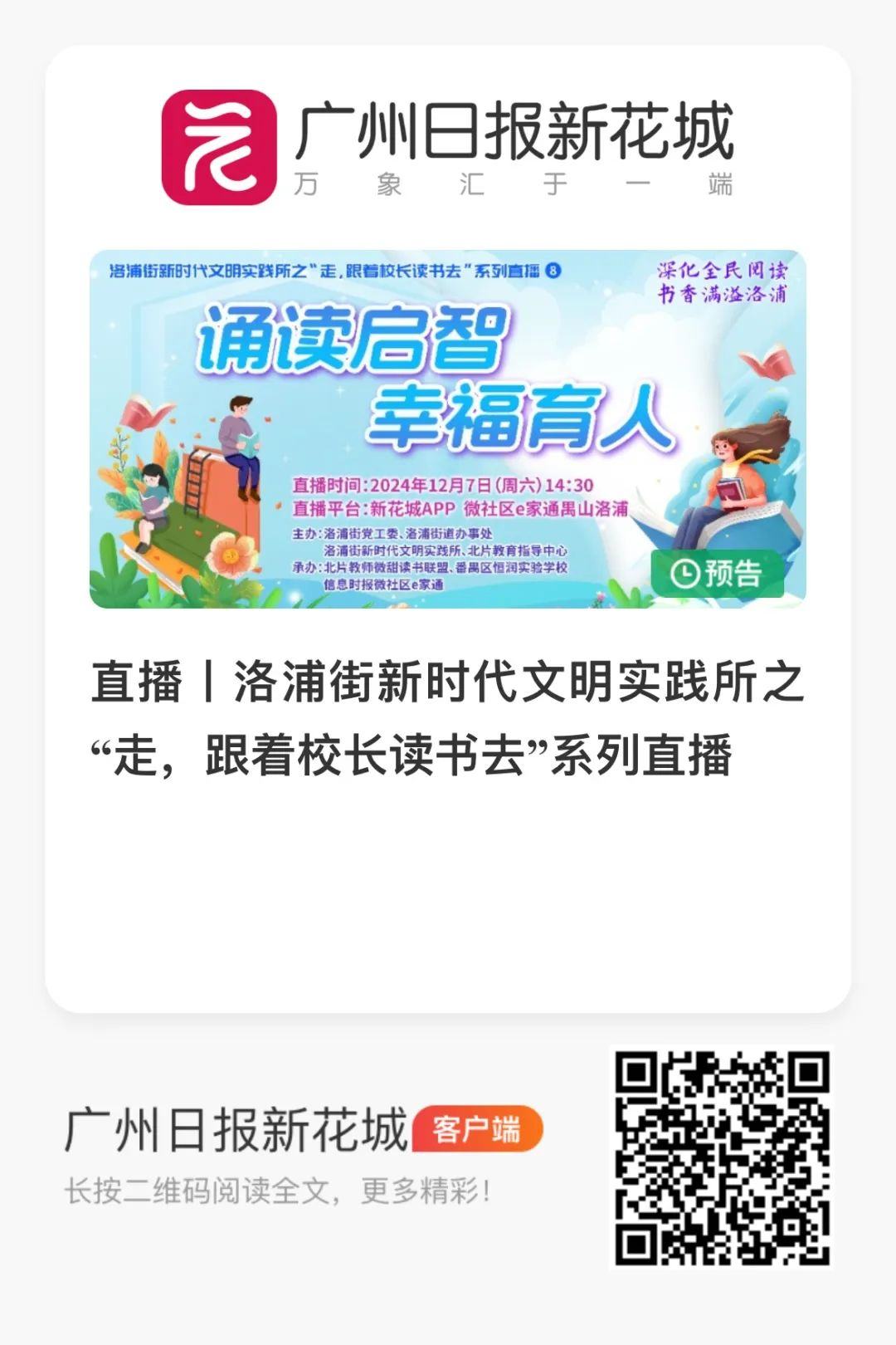 洛浦街新时代文明实践教育实践活动所之“走,跟着校长读书去”第8期节目,主题是“诵读启智 幸福育人”。本期节目主要是激发孩子们对中华经典文学的热爱,并通过经典诵读来提升他们的文化素养。