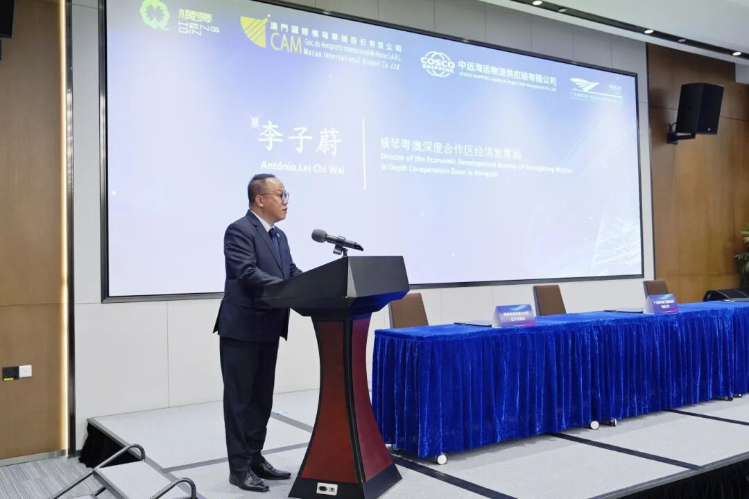 合作区经济发展局局长李子蔚致辞表示,三年来,粤澳双方携手同心,高水平地推动琴澳一体化的发展。正式落地的澳门国际机场横琴前置货站项目正是“澳琴联动”发展模式最生动的实践。