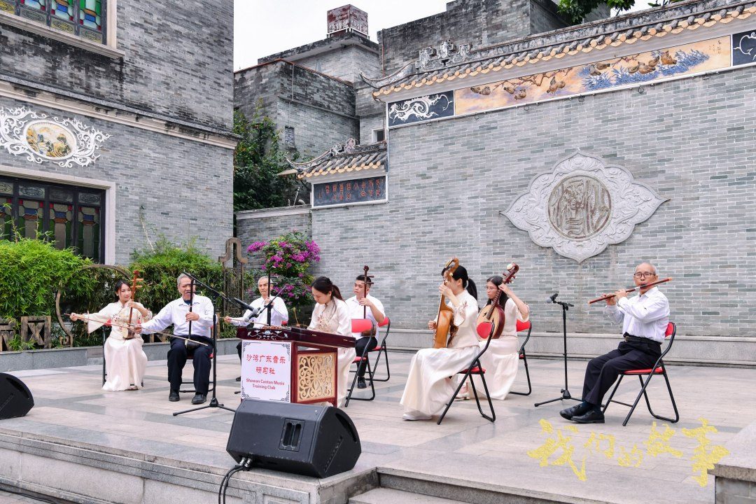 在沙湾古镇广东音乐馆,今年70多岁的粤剧粤曲发烧友韩继基带领自己的乐社,每周都有几天在这里登台展演,为古镇增添粤韵风采,他告诉记者:“我们乐社现在有20多人,主要是退休人员组成,其中有唱粤曲的,也有唱折子戏(粤剧)的,还有爱好广东音乐演奏的,大家自备乐器、自学成才,每个人都有自己的拿手好戏,乐社获得了很多奖项。”