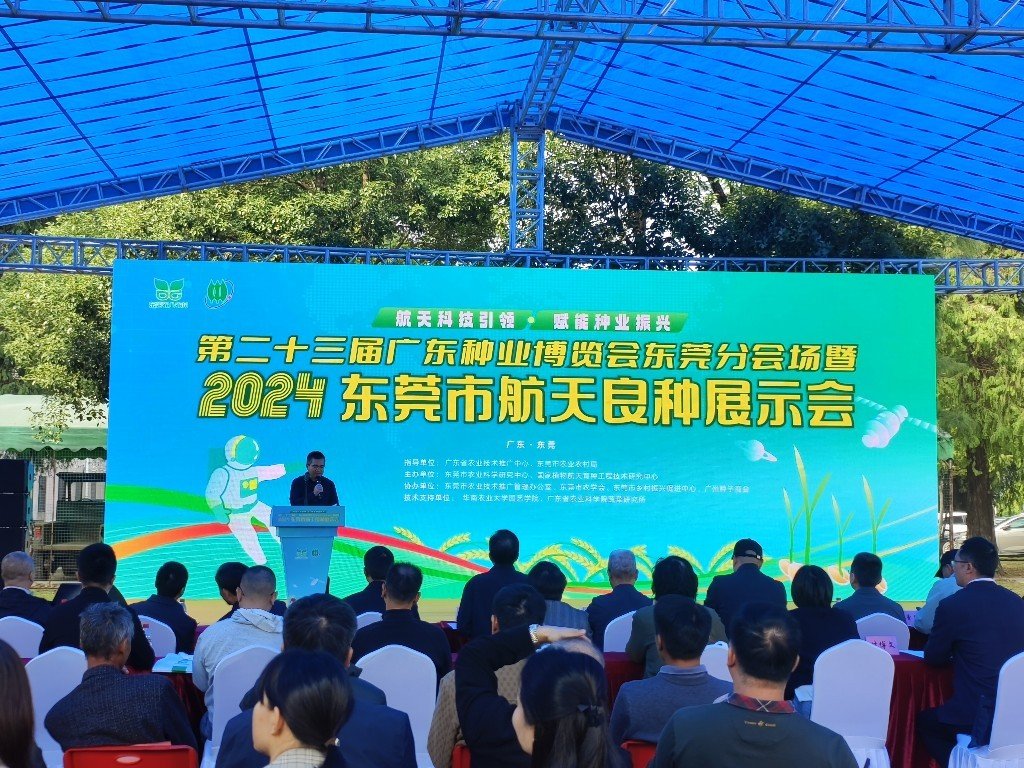 2024年12月10日,第二十三届广东种业博览会东莞分会场暨2024年东莞市航天良种展示会在东莞市农业科学研究中心(万江基地)开幕。本次展示会由广东省农业技术推广中心和东莞市农业农村局指导,东莞市农业科学研究中心、国家植物航天育种工程技术研究中心主办,华南农业大学园艺学院、广东省农业科学院蔬菜研究所为本次展示会提供了技术支持。