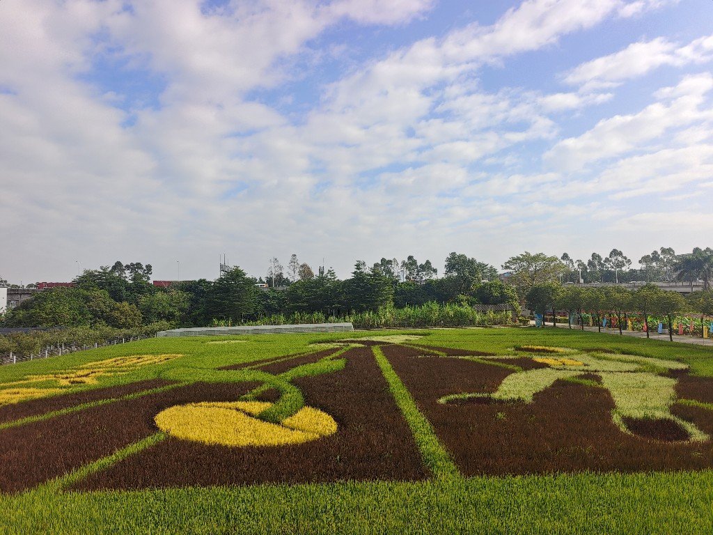稻田画展示区面积约10.5亩,集中展示由航天水稻品种华航香银针及紫色、黄色、白色等多种颜色水稻种植的稻田画。画面生动展现了宇航员、航天器、发芽的种子及“航天育种”四个大字组成,象征着我国农业科研工作者在航天育种领域的探索和努力。