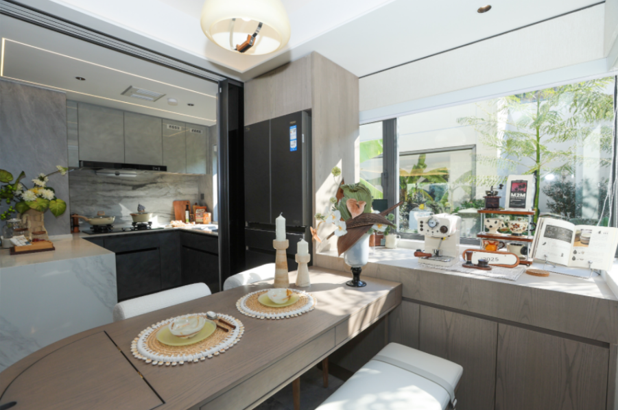 据悉,“广府系”作为越秀今年全新推出的产品系,市场关注度一直很高。而越秀·珑悦西关作为越秀“广府系”落位西关首作,在呈现广府文化的基础上,更尊重西关在地人文,将更多巧思融入建筑、景观和产品。进入示范区,醒狮、窗花、广绣挂画等,广府文化特有符号映入眼帘,传递出深厚的文化底蕴与历史记忆。尤其值得一提的是,在产品的设计细节上也贴合了广州人的生活习惯,例如围绕广州人烹饪习惯,项目在厨房的操作细节和功能配置上花了颇多心思,便于精准把握煲靓汤的火候以及更便捷的操作日常。