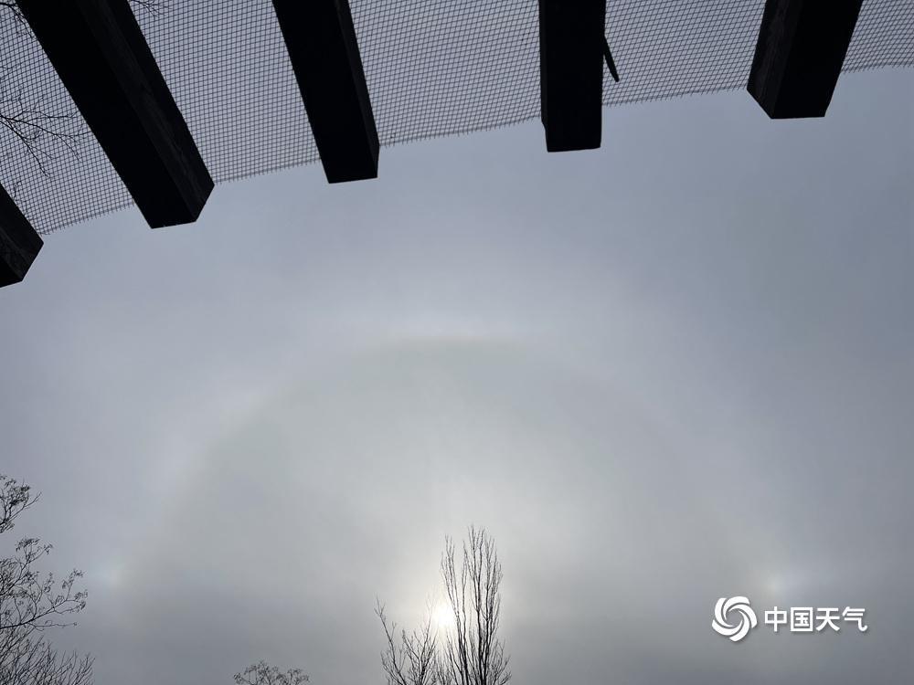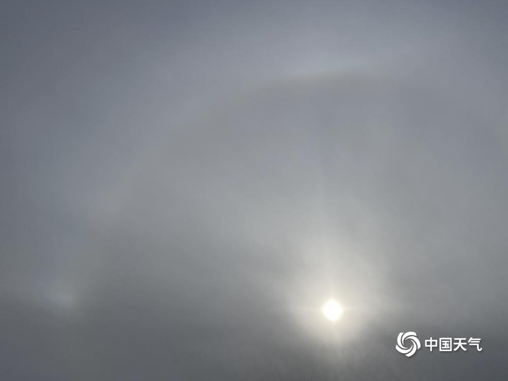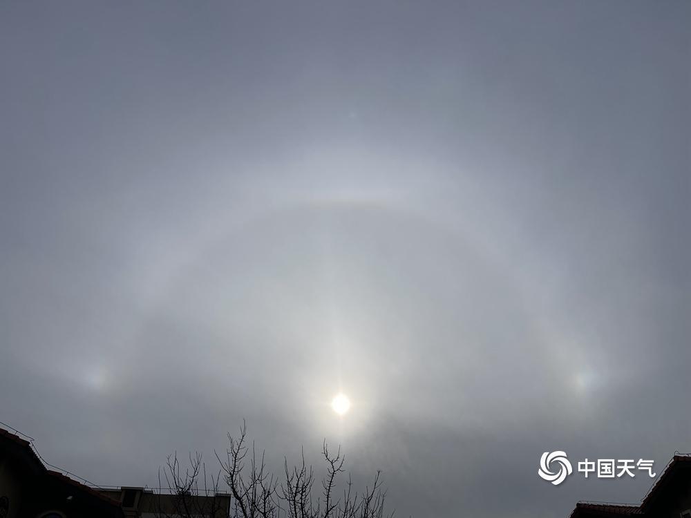 12月10日午后,北京上空出现幻日景观,太阳左右两边各有一个“小太阳”。