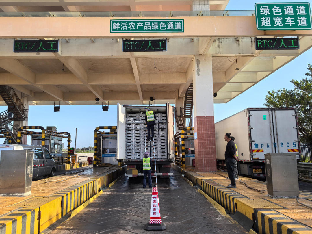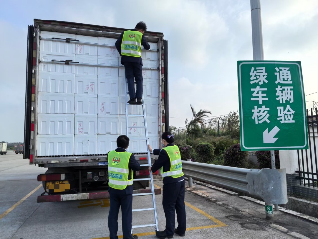 在2024年9月上旬,第11号台风“摩羯”导致徐闻港港口停复航期间,湛徐高速紧急开通绿色通道,确保民生物资运输。根据海南“菜篮子”集团提供的400多辆农产品运输车辆名单,湛江分公司“绿通保障队”快速开启白名单查验模式,简化查验流程,保障“菜篮子”车辆优先通行徐闻港收费站,约7200吨蔬菜瓜果得以快速到港。这一措施有效保障了琼粤两省民生物资供应的及时性和稳定性,得到了海南省平价菜保供惠民行动专班、海南省商务厅、广东海南两省海峡办、海口市及三亚市菜篮子集团等多方的肯定。