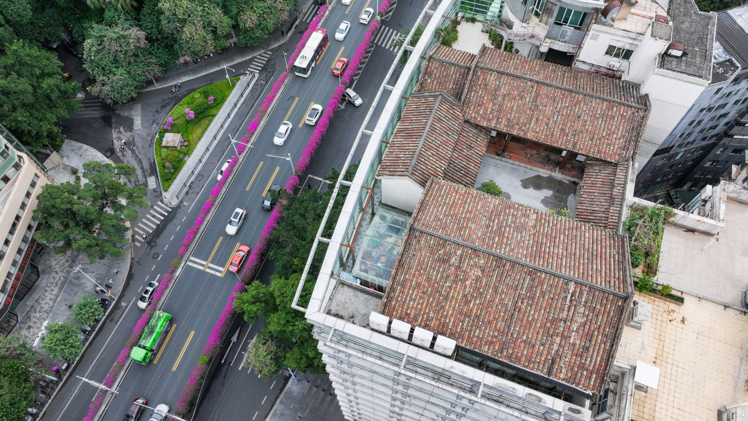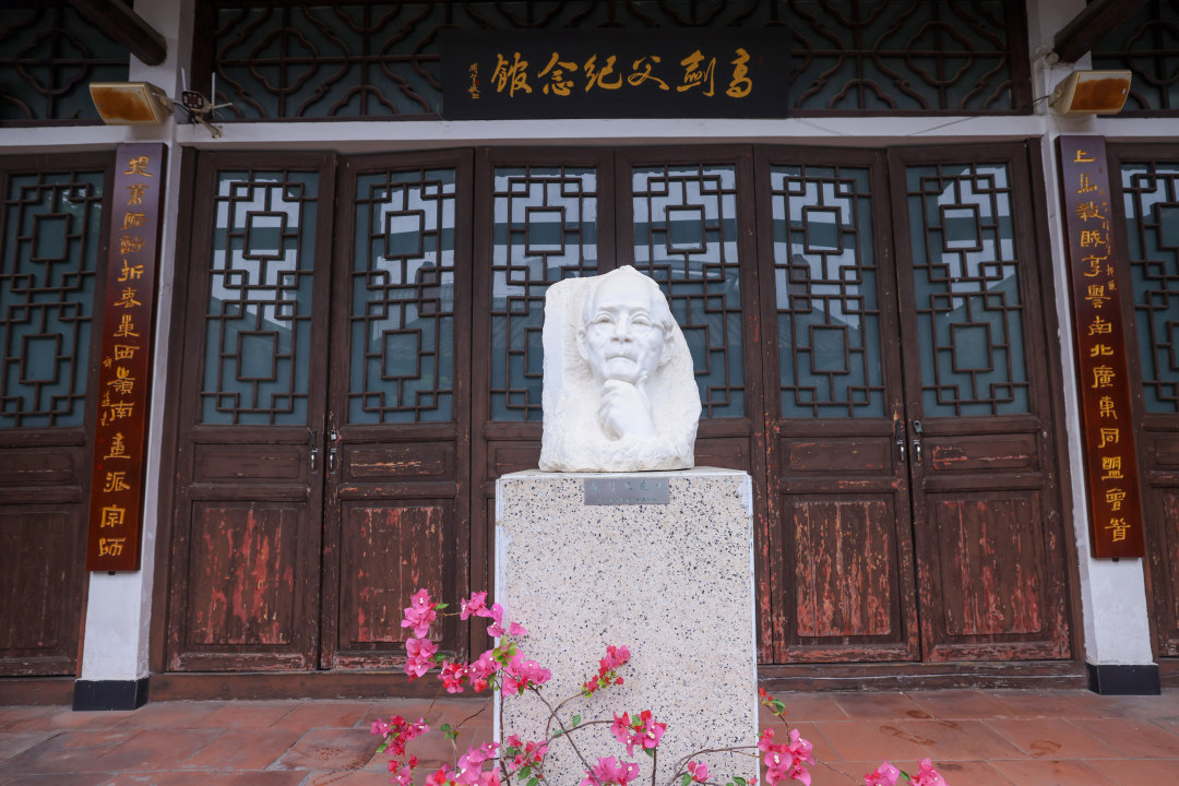 日前,记者来到广州市越秀区盘福路和解放北路交界处的高剑父纪念馆,探访了一处隐秘的空中庭院——春睡画院。高剑父纪念馆馆长李琰介绍,如今高剑父纪念馆展厅和相邻盘福大厦的范围,便是春睡画院旧址所在地,而复原的春睡画院,则移建到了大厦楼顶。