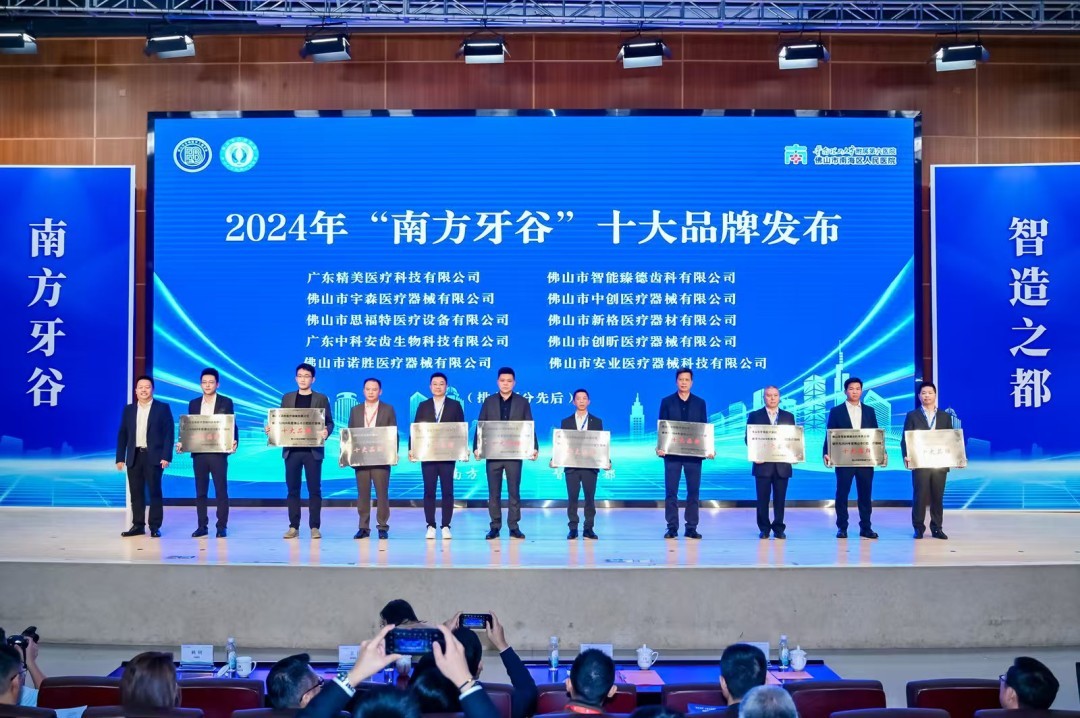 此外,经过严格遴选与评审,大会发布了2024年“南方牙谷”十大品牌,分别是广东精美医疗科技有限公司、佛山市智能臻德齿科有限公司、佛山市宇森医疗器械有限公司、佛山市中创医疗器械有限公司、佛山市思福特医疗设备有限公司、佛山市新格医疗器材有限公司、广东中科安齿生物科技有限公司、佛山市创昕医疗器械有限公司、佛山市诺胜医疗器械有限公司和佛山市安业医疗器械科技有限公司,彰显了这些品牌在产品质量、技术创新、市场表现、品牌影响力等方面的实力,树立了行业标杆。