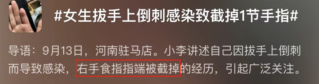 “女子因拔倒刺导致骨髓炎需要进行刮骨手术”等新闻几乎每年都有报道。