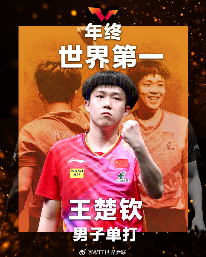 恭喜王楚钦、孙颖莎!国际乒联年终单打世界第一