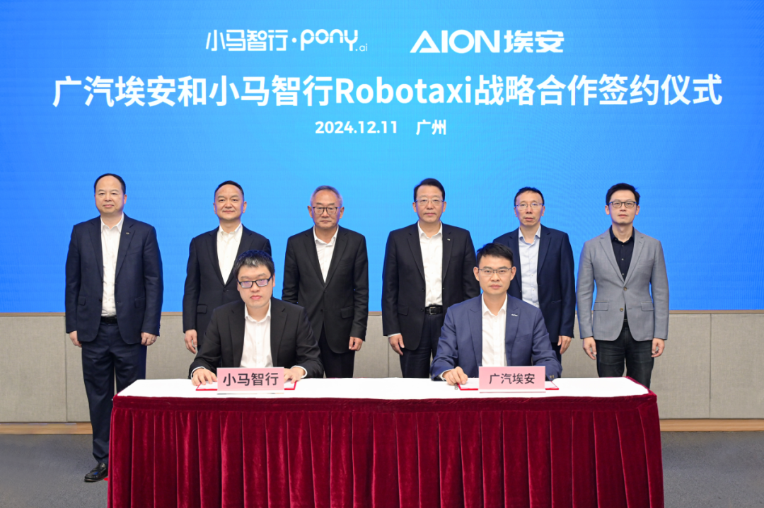 12月11日,南沙独角兽企业小马智行与广汽埃安在广汽集团番禺总部举行Robotaxi战略合作签约仪式,双方将进一步合作打造具备商业运营竞争力的Robotaxi规模化量产车型,共同推动全无人Robotaxi量产商业化落地。