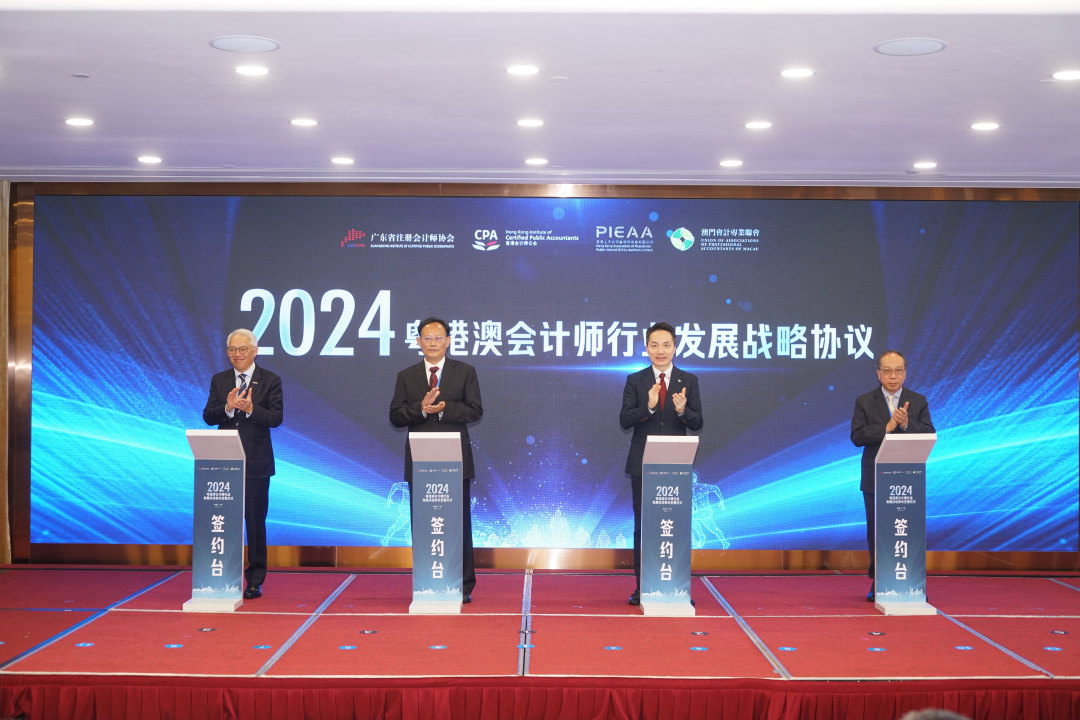 广东省财政厅厅长陈国煌,香港中联办行政财务部副部长李旭鸿出席签署仪式,中国注册会计师协会常务副会长、秘书长江湧,香港财经事务及库务局副局长陈浩濂,澳门财政局局长容光亮线上致辞,粤港澳三地政府有关部门代表,学界和业界以及企业代表近250人参加签署仪式。