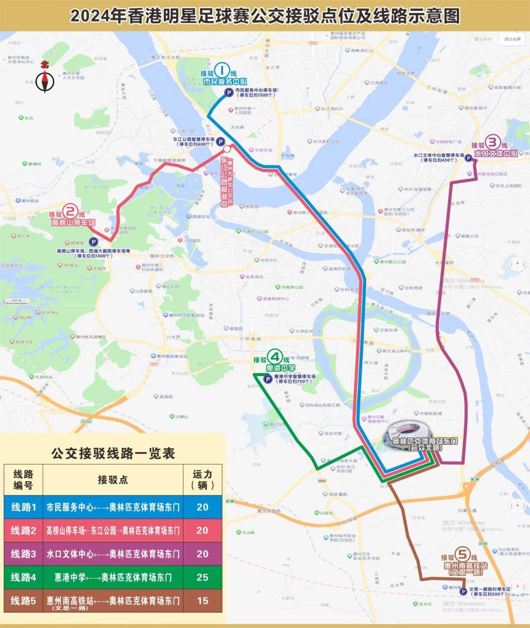 请前往惠州奥林匹克体育场的观众尽量选择公交出行,到就近的公交接驳点换乘公交往返。请途经车辆提前规划好行车线路,尽量避开上述交通管制路段,采取错峰或绕行方式出行,避免交通拥堵。惠州市公安交警部门将根据交通安保工作实际,视情调整交通管制时间和管制措施。请广大市民给予支持配合,服从现场交警和工作人员的指挥。
