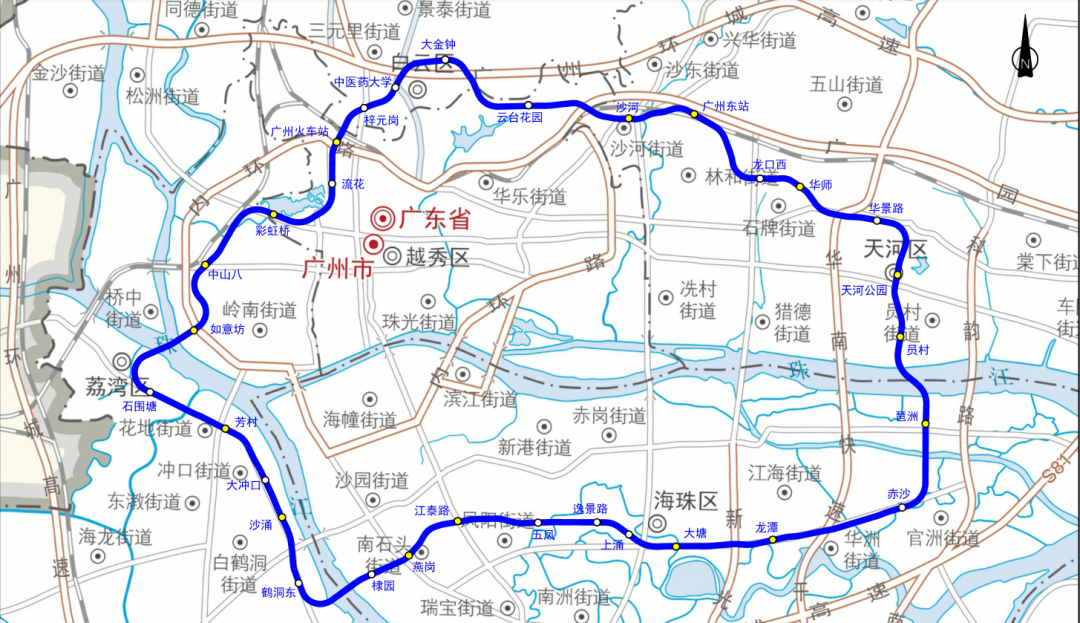每个起点站,对应的半环站都不一样。比如芳村站出发,顺时针方向的半环站是华景路,逆时针方向是天河公园,两边都是5元。