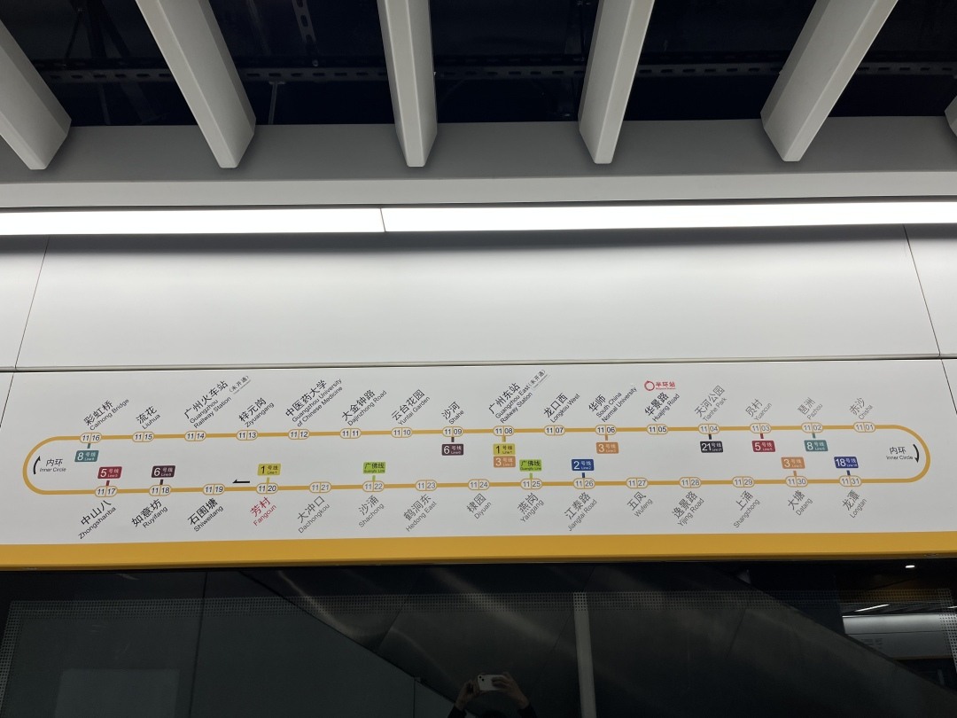 作为“换乘王”,11号线有16个车站与既有线路换乘,将原本需要绕行、换乘的出行路径拉直,甚至实现“零换乘”,多个既有出行区间将降价。比如华师站至天河公园站,过去需要先后经过3号线、5号线、21号线,票价4元,未来11号线将它们“一线牵”,无需换乘,票价只需2元。又如员村站至琶洲站,目前要经过5号线、4号线、8号线,票价3元,未来11号线一站到达,票价降至2元。
