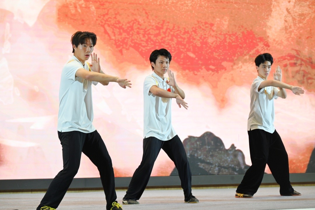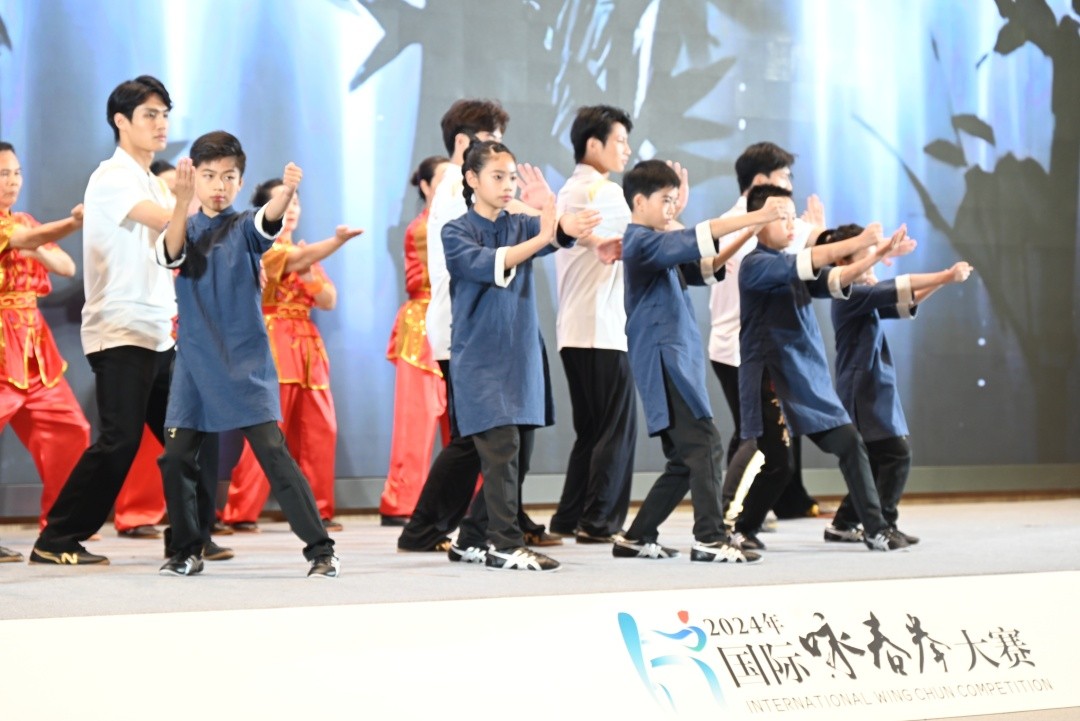 广州日报全媒体记者在现场看到,开幕式在佛山黄飞鸿国际文武学校带来的咏春拳表演《咏·武》中启幕,表演者们以行云流水般的动作,展现了咏春拳的刚柔并济与灵活多变,赢得了现场观众的阵阵掌声。而作为2024年国际咏春拳大赛的开幕节目《传承》,则展现了咏春拳在粤港澳大湾区的传承。该节目由来自佛山、江门等粤港澳大湾区城市的少年、青年、老年三个组别的咏春爱好者共同演绎,年龄跨越8~60岁,充分体现了武术“进校园”“进社区”“进企业”“进乡村”工作。
