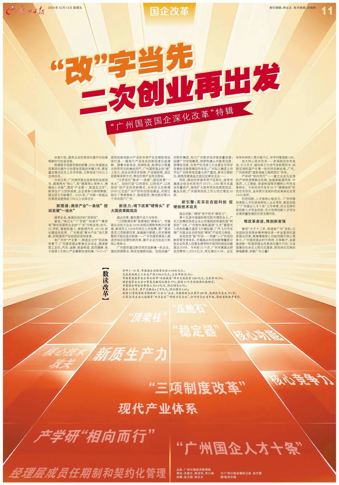 锚定“大干十二年、再造新广州”目标,以彻底的自我革命精神推动进一步全面深化国资国企改革,聚焦增强核心功能和提升核心竞争力,广州国资国企时不我待、只争朝夕,全面推进新一轮国资国企改革深化提升行动,为全面建设社会主义现代化国家,续写深化改革的辉煌篇章,贡献广州力量!