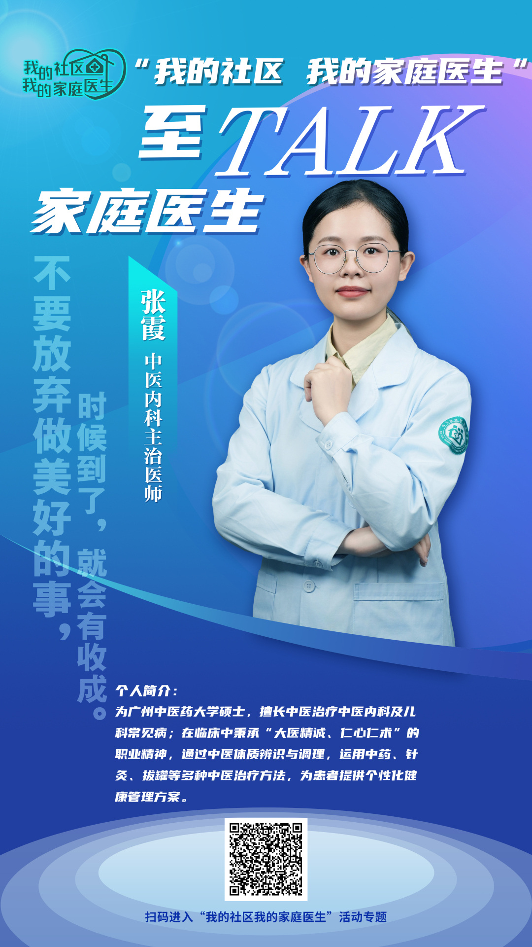 作为一个初入职场的小医生,社区是我成长的摇篮。有人问我,你为什么不选择大医院,而是选择了社区呢?我的回答是:大医院有大医院的优势,而社区的独到之处,在于家庭医生服务团队的建立。