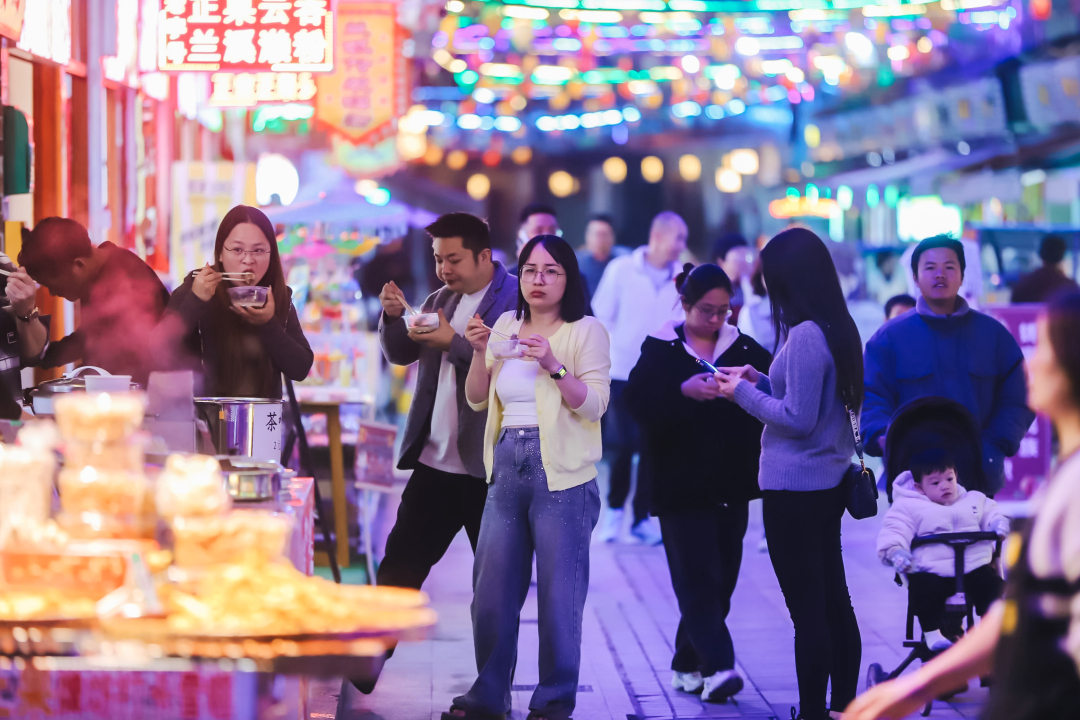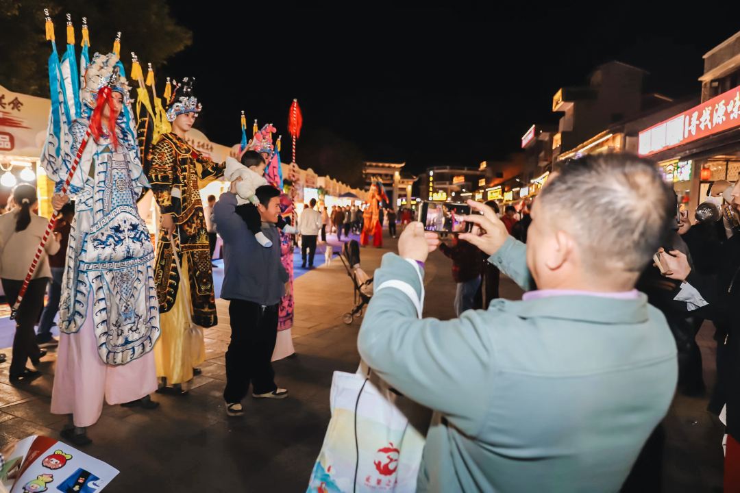 美食节期间,魔术、川剧表演、非遗六头变脸、高跷、真人不倒翁等巡游汇演,与灰塑、掐丝珐琅、漆扇、旋转木马、趣味套圈等非遗体验、游乐设施项目。