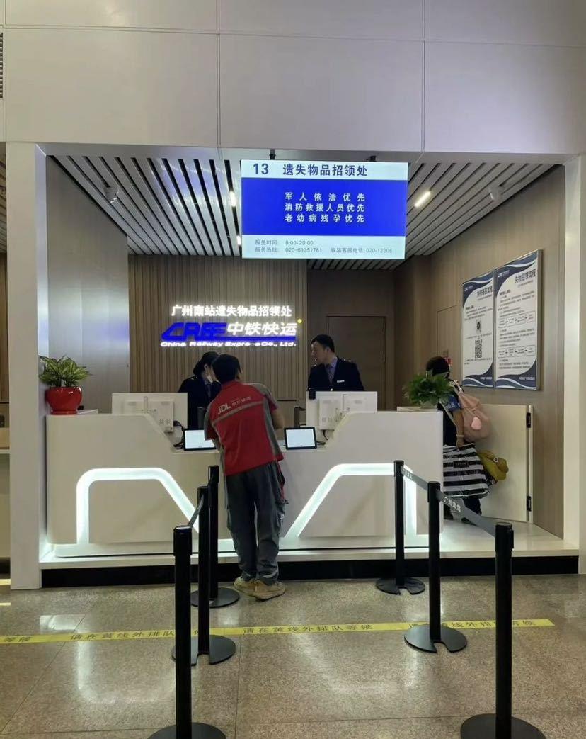 最近,广州南站原售票大厅已升级为综合服务中心,可办理票务、失物招领、纸质临时身份证明等业务,进一步提升旅客服务体验。