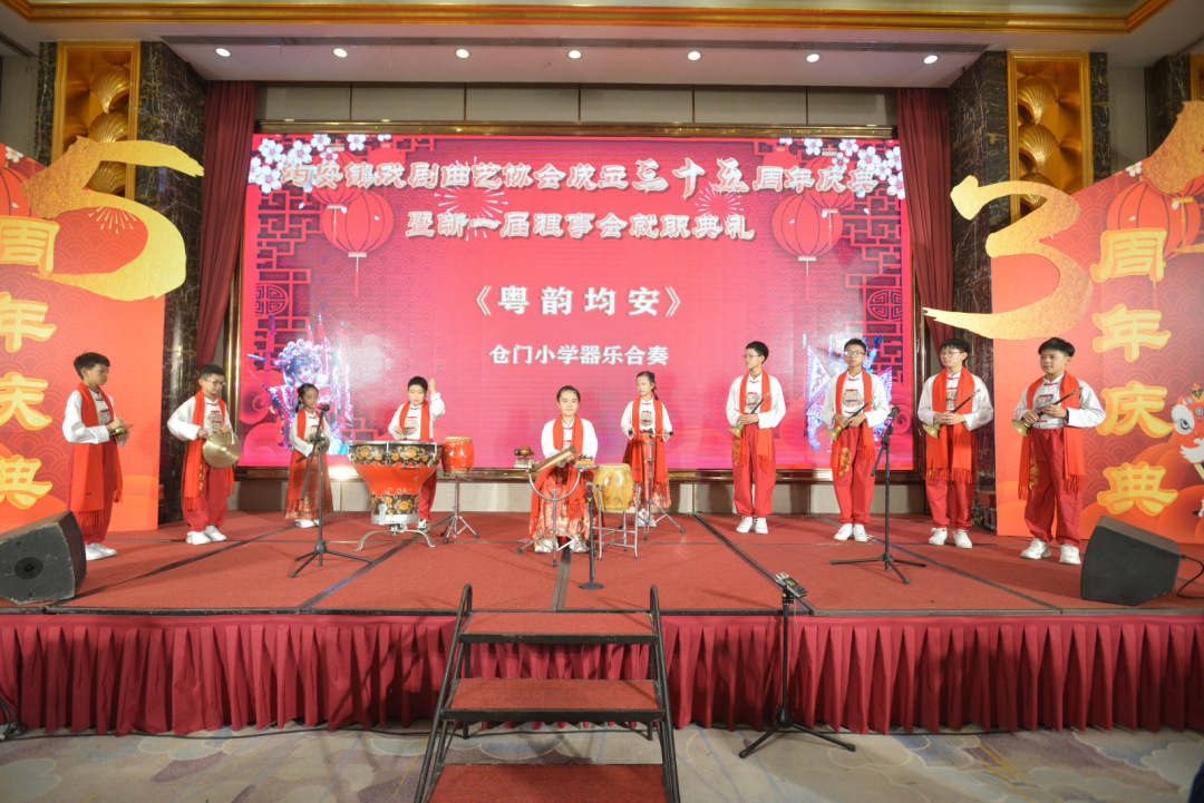 12月12日晚上,佛山市顺德区均安镇戏剧曲艺协会成立三十五周年庆典暨新一届理事会就职仪式圆满举行。活动现场,仓门小学学子带来了器乐合奏作品《粤韵均安》,该作品在今年的第十八届广东省青少年曲艺“明日之星”选拔赛(粤语曲种)中荣获节目类二等奖。同时,还有多位曲艺“发烧友”登台献技,好戏连连,向600多名来自粤港澳大湾区的嘉宾及戏剧曲艺界的艺术家们近距离展现曲艺魅力。