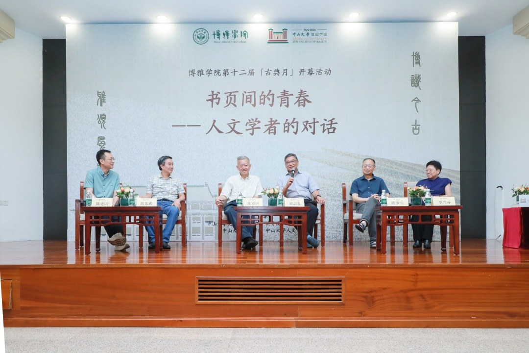 在本届“古典月·悦读”活动中,多位名师带来精彩讲座。中大历史学系教授陈春声、历史学系教授刘志伟、哲学系教授陈少明、中国语言文学系教授陈伟武、哲学系教授李兰芬捕捉“书页间的青春”,揭开岁月的尘封,开展了一场人文学者间关于求学、理想、读书之乐的精彩对话。