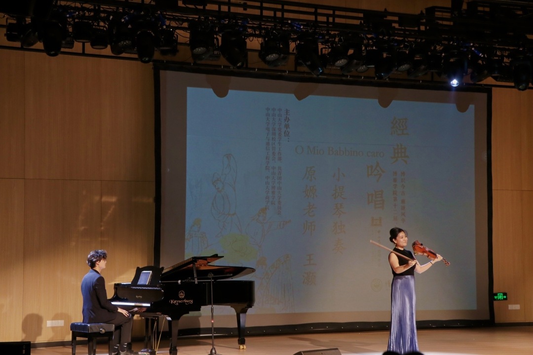 从西周、春秋的雅风共鸣,古希腊、古罗马的繁华与哀愁,到中国唐宋时期的磅礴,欧洲中世纪的曙光,再到明清、文艺复兴时期的百花齐放,悠扬的旋律与古老的诗篇交织成一幅生动的文化画卷……近日,“博识今古 雅颂风华”第十二届博雅学院“古典月·经典吟唱”晚会在中山大学深圳校区举行。中西文明不同时期的经典之作在舞台上精彩呈现,吸引了三校区五校园文理医工艺多学科师生参与、欣赏。