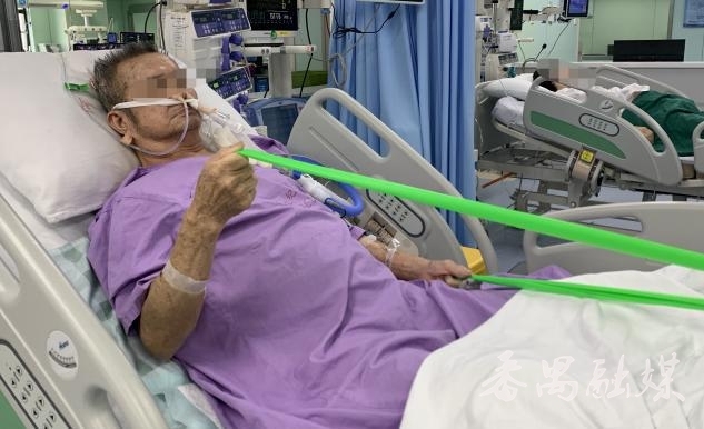 此外,在患者病情稳定前提下,ICU医护人员鼓励并协助其进行早期康复锻炼,通过吹气球、握力球、弹力带锻炼、八段锦、床上脚踏车等康复训练,让患者尽早实现坐起、床边起身、下床。这不但增强了患者对抗病魔的信心,而且还对预防肌肉废用性萎缩和下肢静脉血栓等并发症的发生起到了很大的帮助。