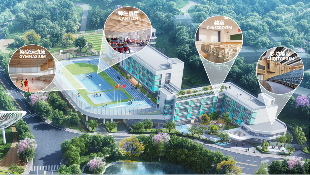 据悉,越秀观樾项目在学校的选址方面,将教学楼布局在南向一线瞰湖观景位置,尽可能放大景观视野、营造安静氛围;设计方面,坚持以东方语境表达建筑与山水的关系,依山就势,将月亮湖的曲线灵感引入设计之中,打造一座依山隐林入湖的现代山水书院,让学校空间完全向自然开放,还原“自然教育”的真意。在空间布局方面,则坚持以孩子需求为导向,规划独具特色的立体式校园设计,拟规划庭院空间、屋顶运动场、风雨球场等场所、拟配置计算机教室、美术书法教室、音乐器乐教室等功能室,为学生提供多元活动场域。