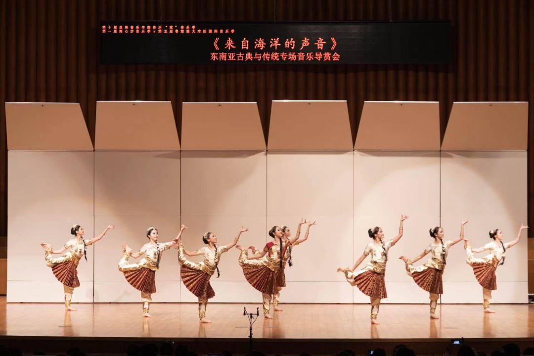 研讨会期间,参会各国音乐家还联合举办了“来自海洋的声音——东南亚古典与传统专场音乐导赏会”。来自印尼、泰国、斯里兰卡、新加坡等国的著名音乐家们齐聚一堂,为观众带来了一场盛大的视听盛宴,展现了不同地域传统音乐文化的魅力与风情。同时,星海音乐学院师生也展示了民族室内乐作品《春之岭南》和广东音乐经典之作《雨打芭蕉》等作品,舞蹈学院的学生们还演绎了《罐舞》、印度古典舞组合等舞蹈,展现了各地区传统艺术的风貌和深厚的哲学内涵。
