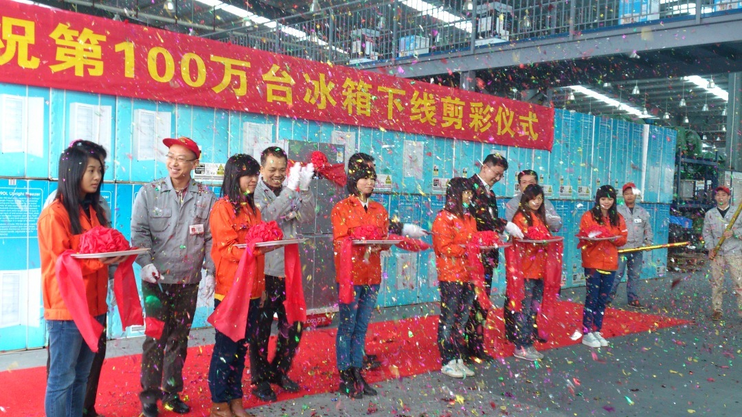 同年,万宝电器对新加坡生产线进行第二次技术改造,主要工序实现了自动化,箱体采用先进的工艺,让每个箱体从进料到成型只需1分钟,当年产量达37.6万台,占全国电冰箱总产量的29%。