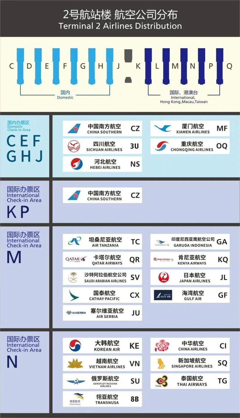 自2024年12月15日起,广州白云国际机场二号航站楼国际M、P值机区域运营航空公司有新变化。