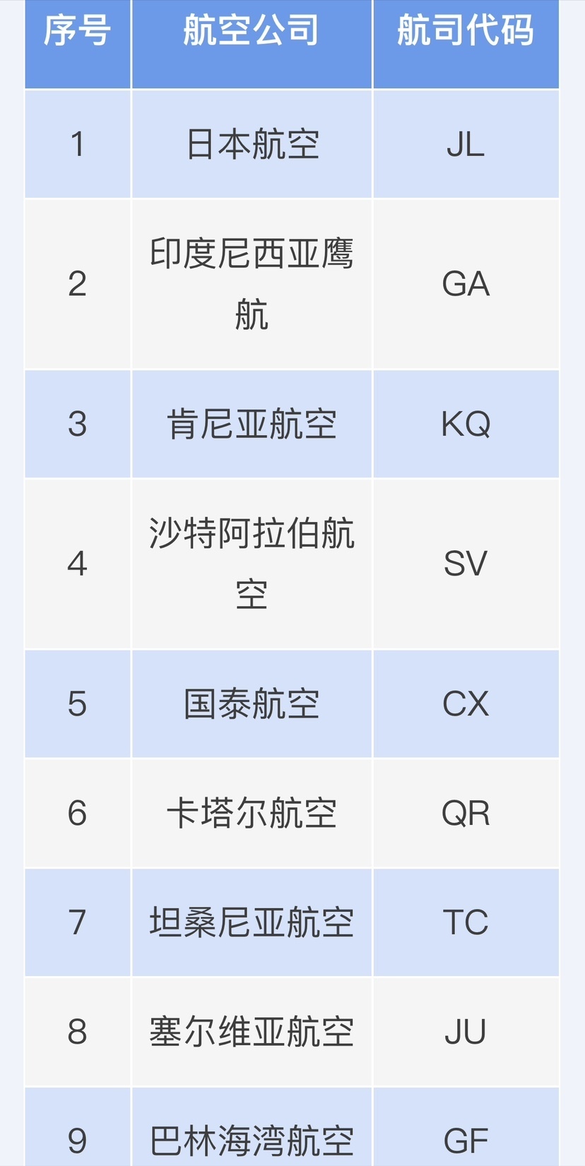 乘坐下表所列航司的出境旅客,需前往二号航站楼三层出发大厅M值机区域办理值机手续。
