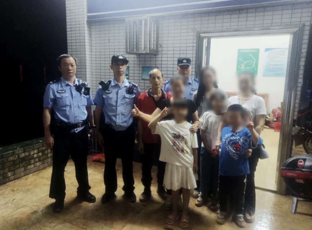 时值雨夜,山上气温骤降,森林分局立即指派白云派出所处警组及无人机备勤组到达现场,协同白云区公安分局龙归派出所巡组开展救援。经无人机组多次进行空中搜寻和喊话,发现被困人员位于六片山未开发的山路,地面救援警力按照无人机组指引,于当晚11时寻获3名妇女和3名儿童,并将其安全送至出口。