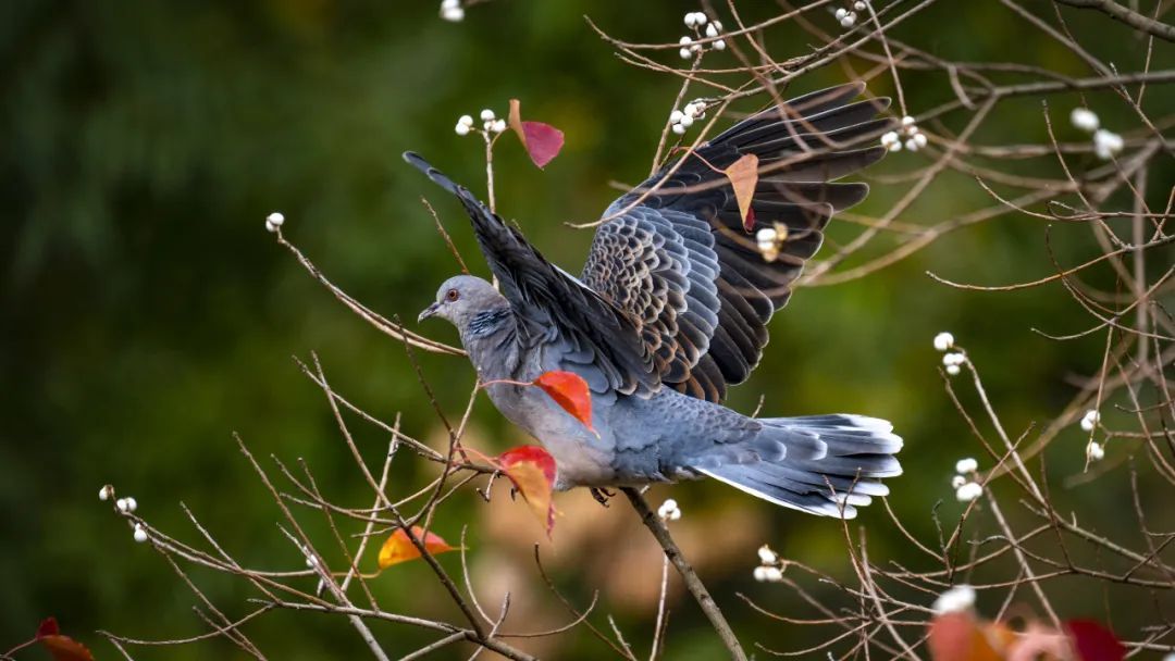 山斑鸠采食乌桕