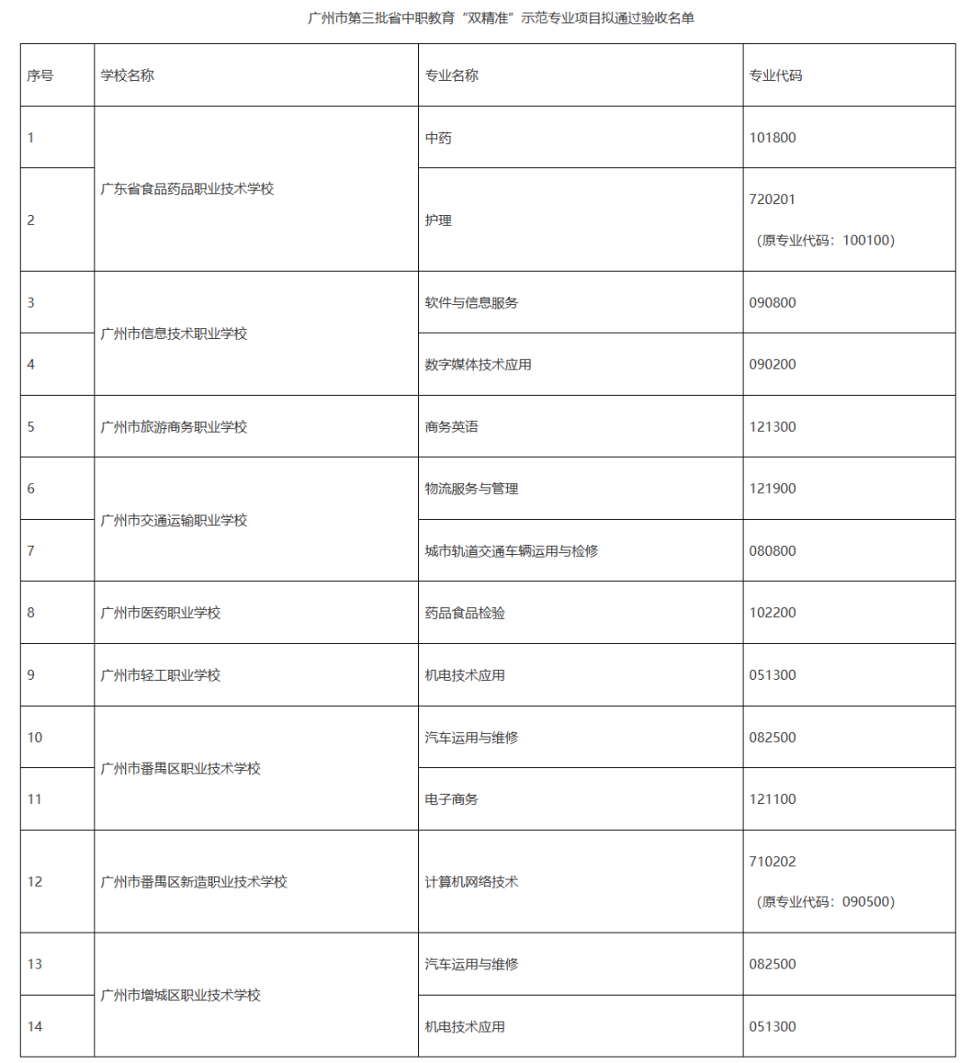 12月16日,广州市教育局官网公示省第三批中职教育“双精准”示范专业建设项目验收结果。结果显示,9所学校共14个专业拟通过验收。公示期为自本通知发布之日起5个工作日。