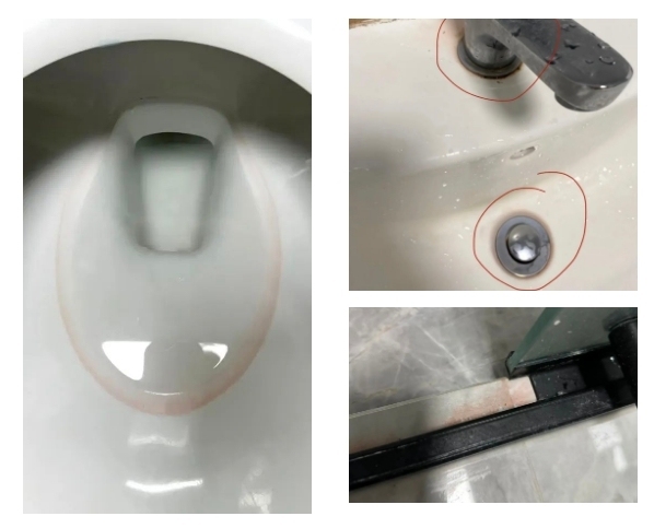 厕所的一些卫生死角,比如马桶、洗手盆、瓷砖、水槽等,时不时会出现淡红色或粉色的污渍。
