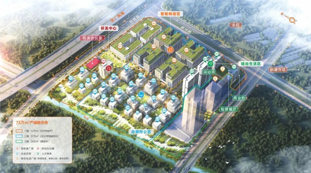 项目内配置6000㎡智慧餐厅、59000㎡休闲景观、10000㎡运动公园、2000套人才宿舍、硅谷生活广场,打造全配套醇熟园区,休闲、运动、购物、餐饮、住宿应有尽有。满足高端人才对生活品质、充盈精神的需求,助企招工稳工,更好发展。