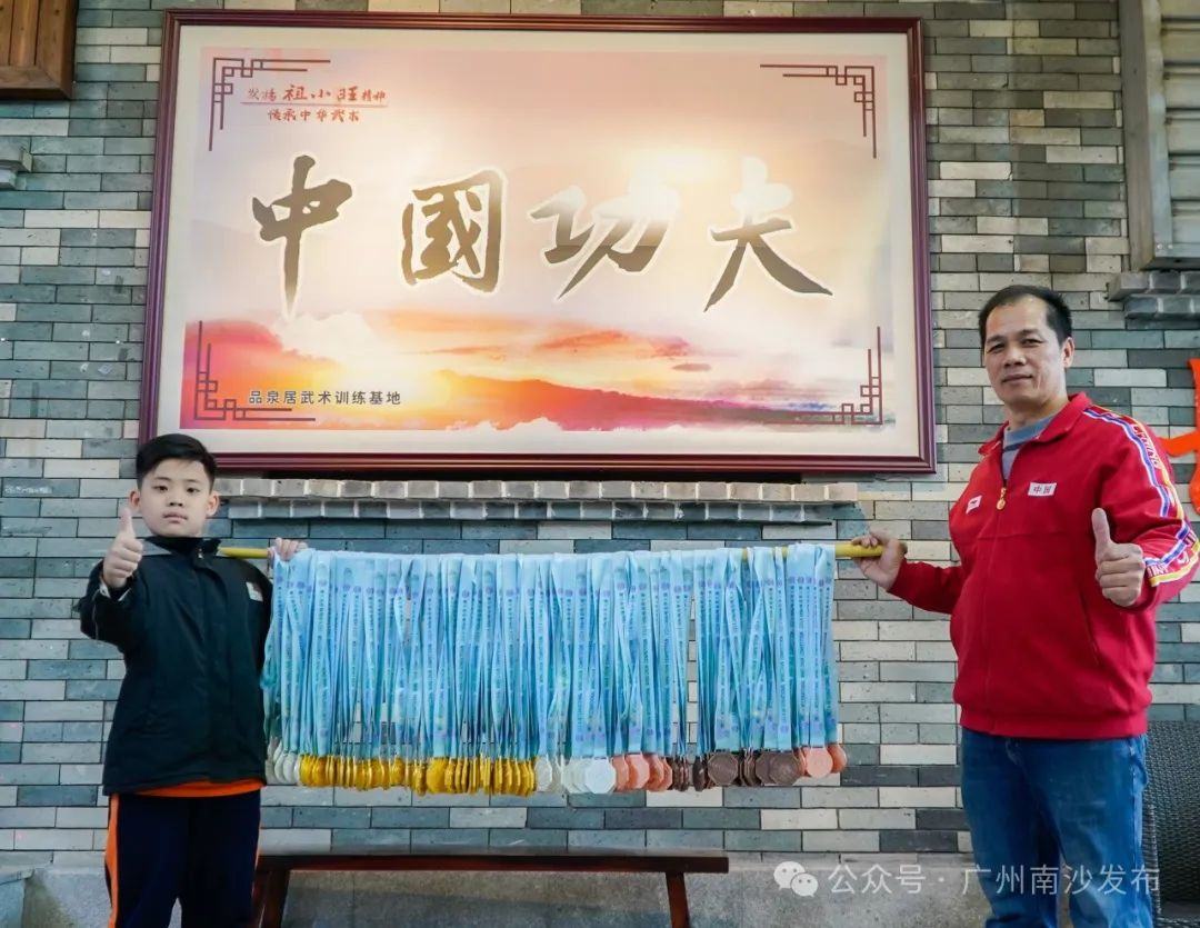 去年8月,在2023年广东省武术精英大赛中,东涌镇武术龙狮会的16名武术队员参加41个竞技比赛项目,获得16金12银11铜的成绩;