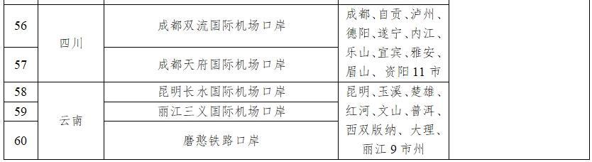至此,适用对外开放口岸由原有的39个增加至60个。
