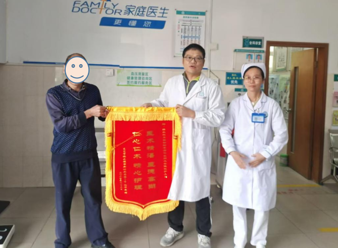 转眼到了12月5日,在桥头医院经过近20天的康复治疗,患者治愈出院。12月6日,患者陶伯怀揣着生命再造的激动情绪,把沉甸甸的锦旗送到桥头镇田新社区卫生服务站的医护人员手中。