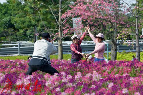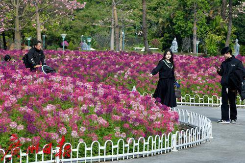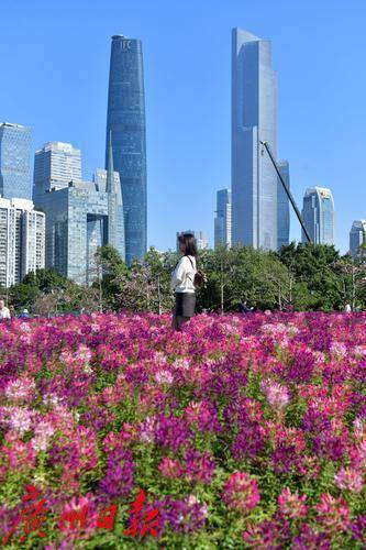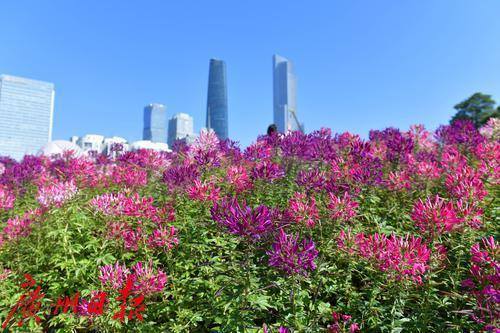 二沙岛宏城公园的醉蝶花海近期成了网红打卡点,艳丽多彩的醉蝶花吸引了不少市民游客前来打卡,在蓝天之下,搭配着城市天际线的背景,将广州的花城之名渲染地淋漓尽致。