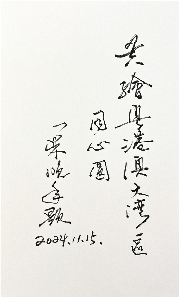梁晚年为专栏题字“共绘粤港澳大湾区同心圆”。