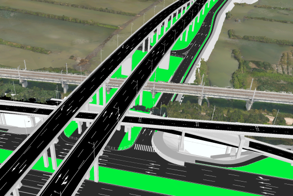 万龙大桥工程涵盖的专业数量较多,各专业间接口复杂,针对其临近既有铁路线的问题,项目组创建了本项目全专业精细化模型和既有地下管线模型,采用轻量化平台对各专业BIM数据和实景地形进行了融合分析,提前排查并解决了专业间的构件冲突,为项目的精细化建设提供了技术支持。