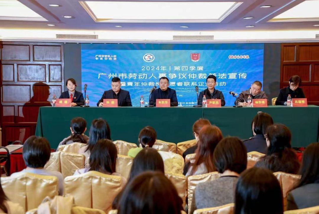 近日,广州市劳动人事争议仲裁院联合中国劳动保障报法律事务中心、中国劳动在线采取“线下+线上直播”的方式,开展普法宣传暨青年仲裁员志愿者联系企业活动,此次活动由广东省人社厅进行业务指导,共300家单位306名代表在现场参加,21067人在线进行了观看。活动旨在进一步加强劳动人事争议相关法律法规及政策宣传,指导企业完善用工管理制度,筑牢劳动纠纷化解第一道防线,提高争议源头预防化解能力,全力维护劳动关系和谐稳定。