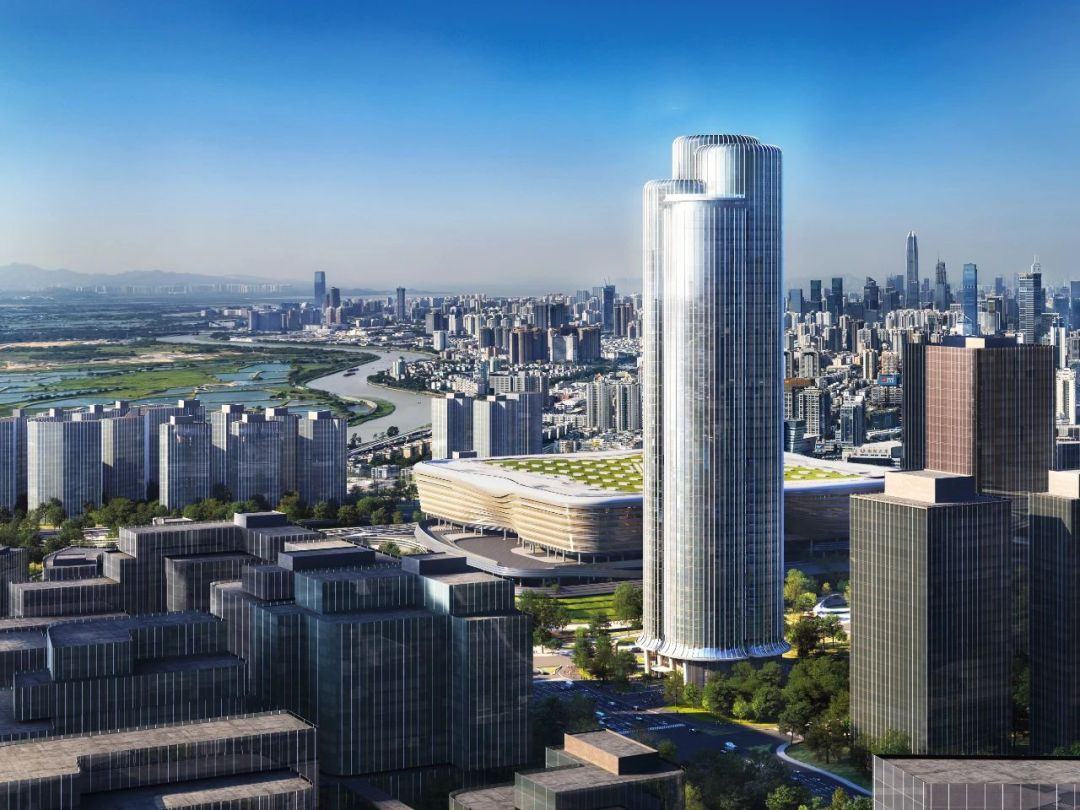 新皇岗口岸综合业务楼项目,位于深圳福田区福田南路与百合三路交汇处,总建筑面积约17万平方米,地下5层,地上50层。项目由Aedas、华阳国际和深圳市综合交通设计研究院设计,以“流水叠石”为核心理念,是深圳河套深港科技创新合作区“一心两翼”规划布局的核心建筑。建成后,项目将服务于新皇岗口岸非现场业务工作,成为串联“广深港科技创新走廊”的重要枢纽。