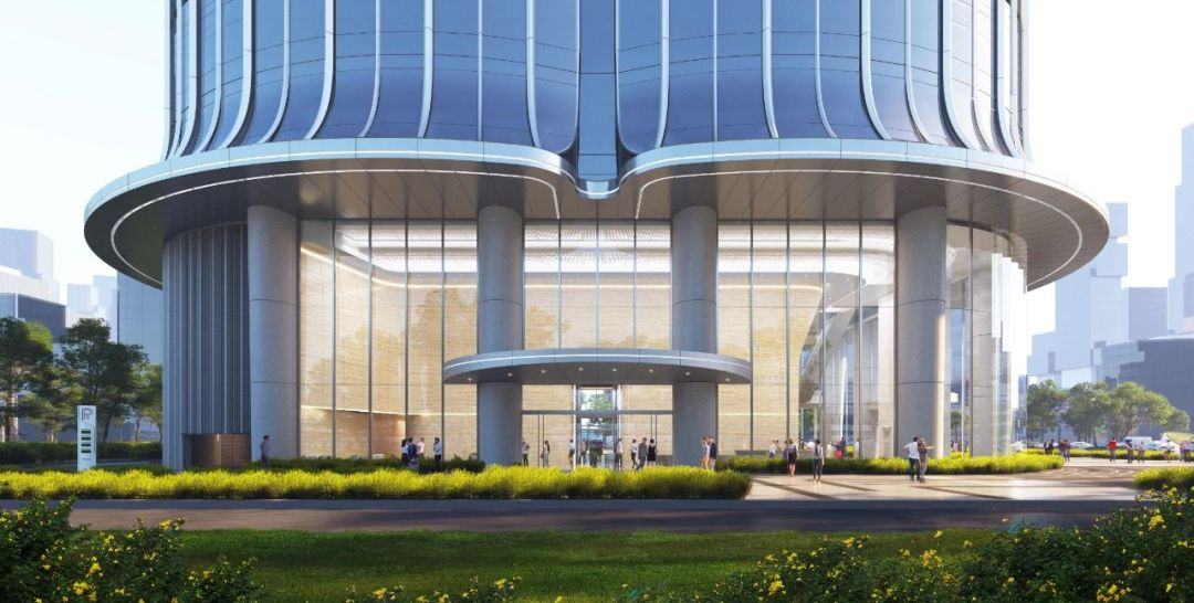 而13米高通透、震撼的首层大堂幕墙,采用超白玻拉锁幕墙系统,将业务大楼的首层大堂一览无余地展现给市民。大堂室内墙面采用浅暖色调的洞石作为主要材料,来表达“叠石”的温润质感,致力营造一个明快、亲和的新型业务运营环境。项目垂直交通设计以“高效运作、便捷出行”为原则,出入口布置充分考虑与周边城市的关系,首层大堂可由东、南、西三个方向进入,人行主入口设置在塔楼南侧,面向中央绿轴及地铁七号线,与公共交通无缝衔接。目前,项目正处于室内精装修及幕墙施工阶段。