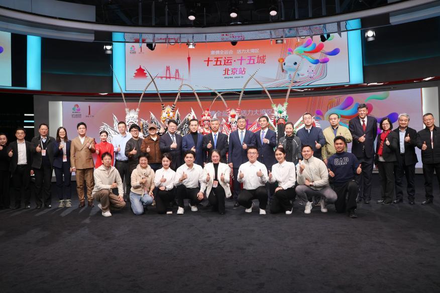 激情全运会,活力大湾区!中华人民共和国第十五届运动会(以下简称“十五运会”)将于2025年11月9日至21日在粤港澳大湾区举行。为共同传播全运盛会,分享体育魅力,今日(12月18日),“十五运·十五城”首站首场发布会在北京人民日报社人民网演播厅举行。富有岭南特色的热血《英歌》表演拉开活动帷幕,“点燃”现场气氛。