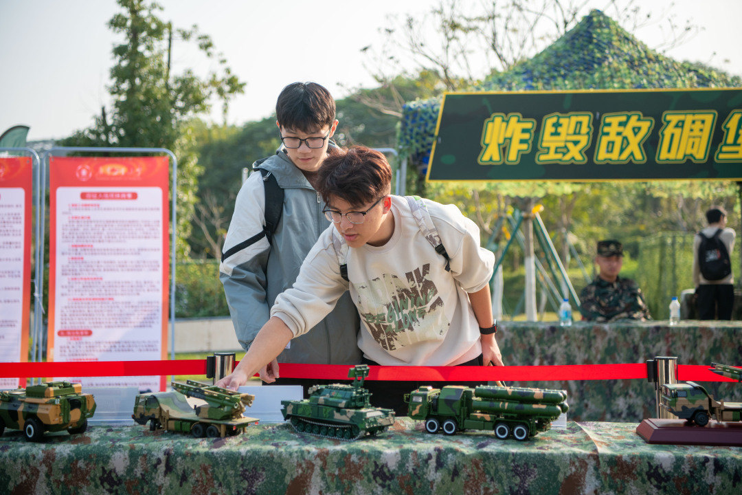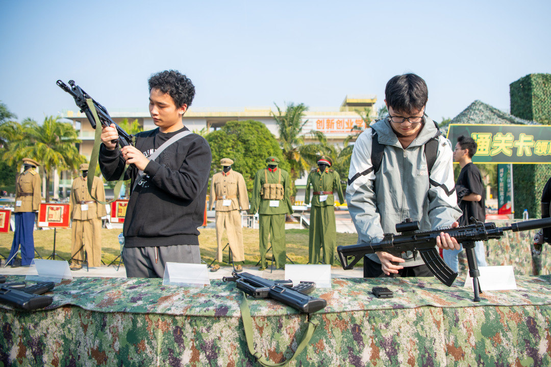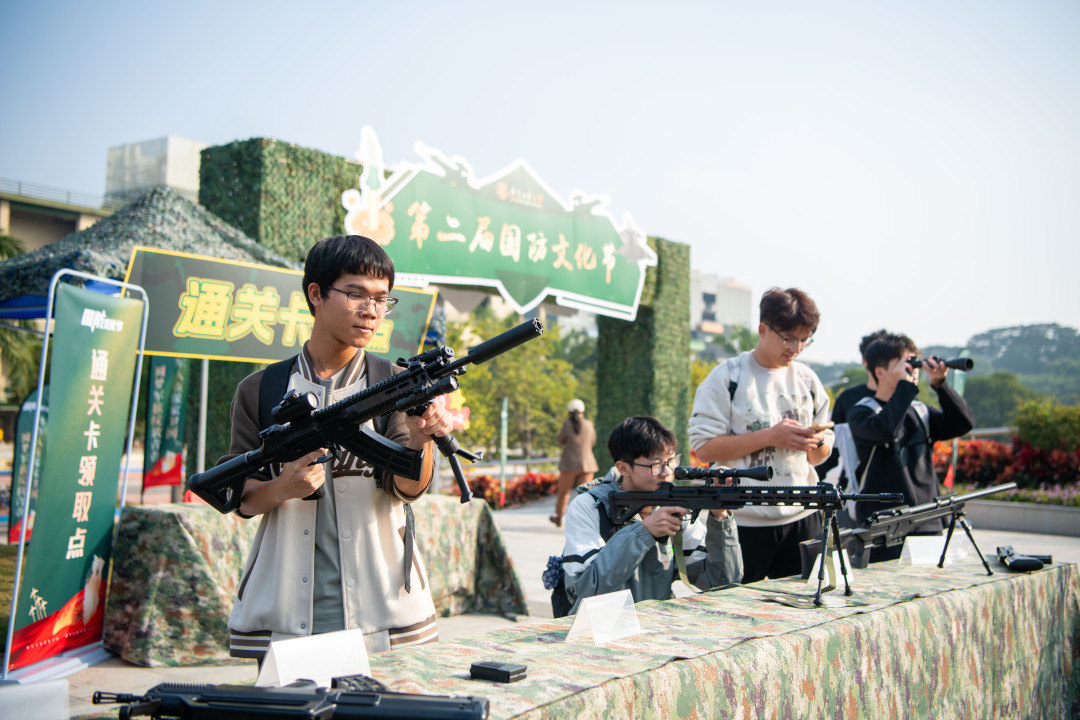 当天,正值广东工业大学举办第二届国防文化节并召开2024年征兵工作总结会暨2025年征兵工作部署会。在文化活动中心东广场上,第二届国防文化节活动现场人头攒动。除了入伍政策咨询点、征兵移动体检车、国防教育大篷车、国防科技力量展示区等体验展示区域,现场还设置了闯关项目区。争分夺秒、神枪手、习武堂、战场红十字、穿上军装等7个闯关挑战项目吸引了不少学生跃跃欲试。