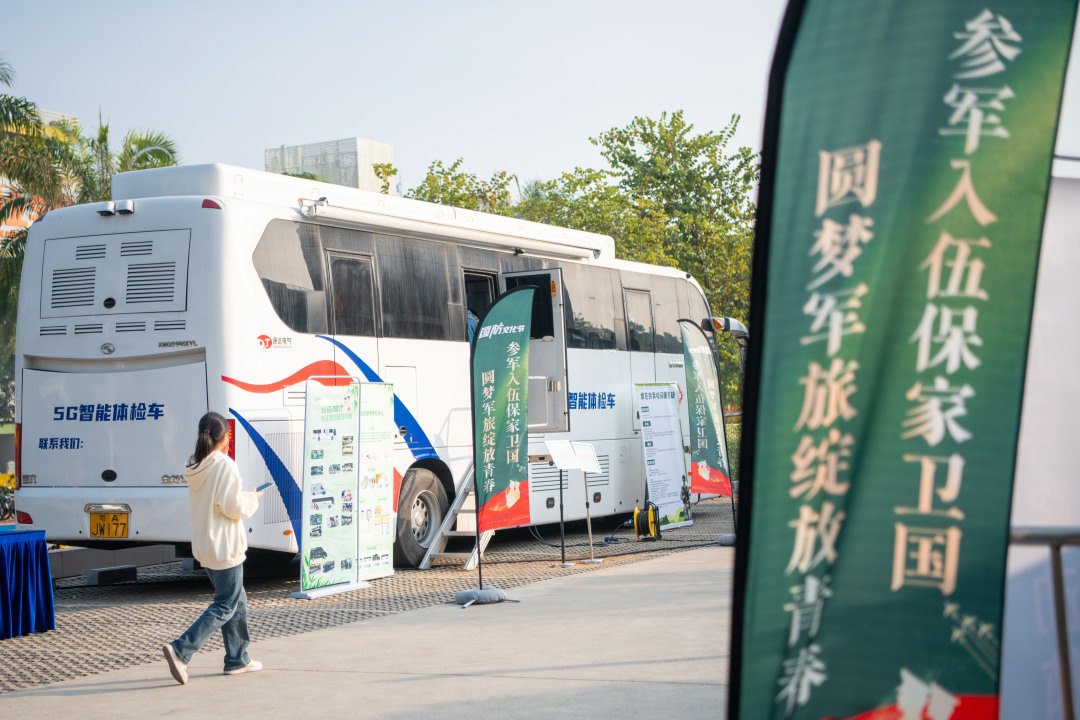 “寒假做视力矫正手术,能赶上明年下半年报名参军吗”“有点肘外翻,不知道是否符合征兵体检标准”……近日,广州市越秀区“2025年征兵宣传进校园”系列活动走进广东工业大学大学城校区,不少大学生在了解征兵政策后登上体检车进行体格初检。