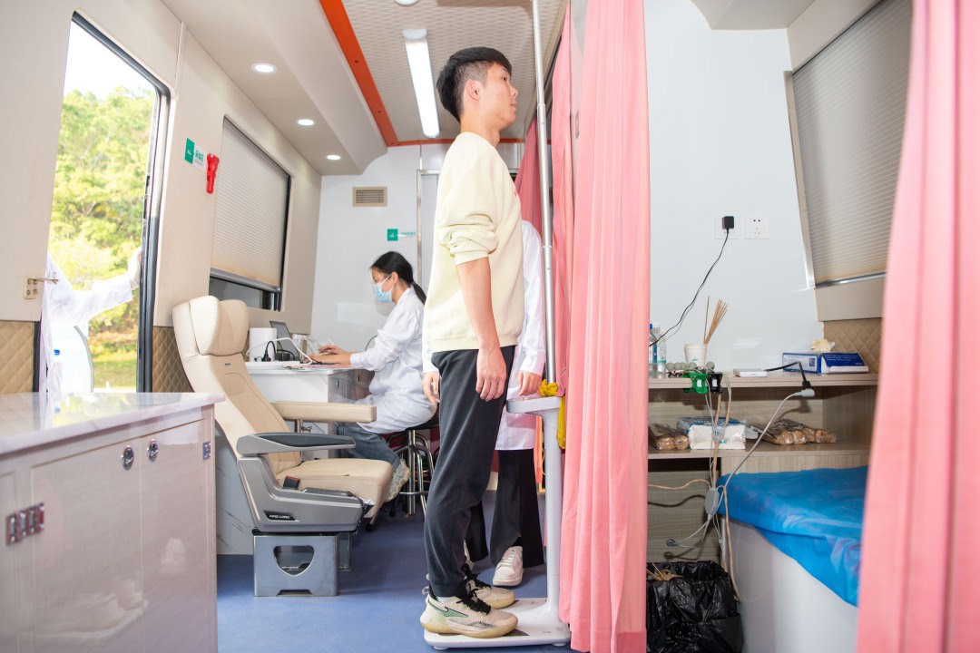身高体重测量仪、血压计、心电图机、血常规检测仪、视力表……记者留意到,在移动征兵体检车上,相关医疗仪器和设备一应俱全,近10名医护人员耐心细致地为学生进行体格检查。越秀区征兵办工作人员说,“我们详细登记初检合格大学生的信息,并鼓励他们参加上站体检等后续应征程序。对初检不合格的大学生,医护人员不仅作出解释,还提出可行性建议,为他们树立信心、鼓劲加油。”